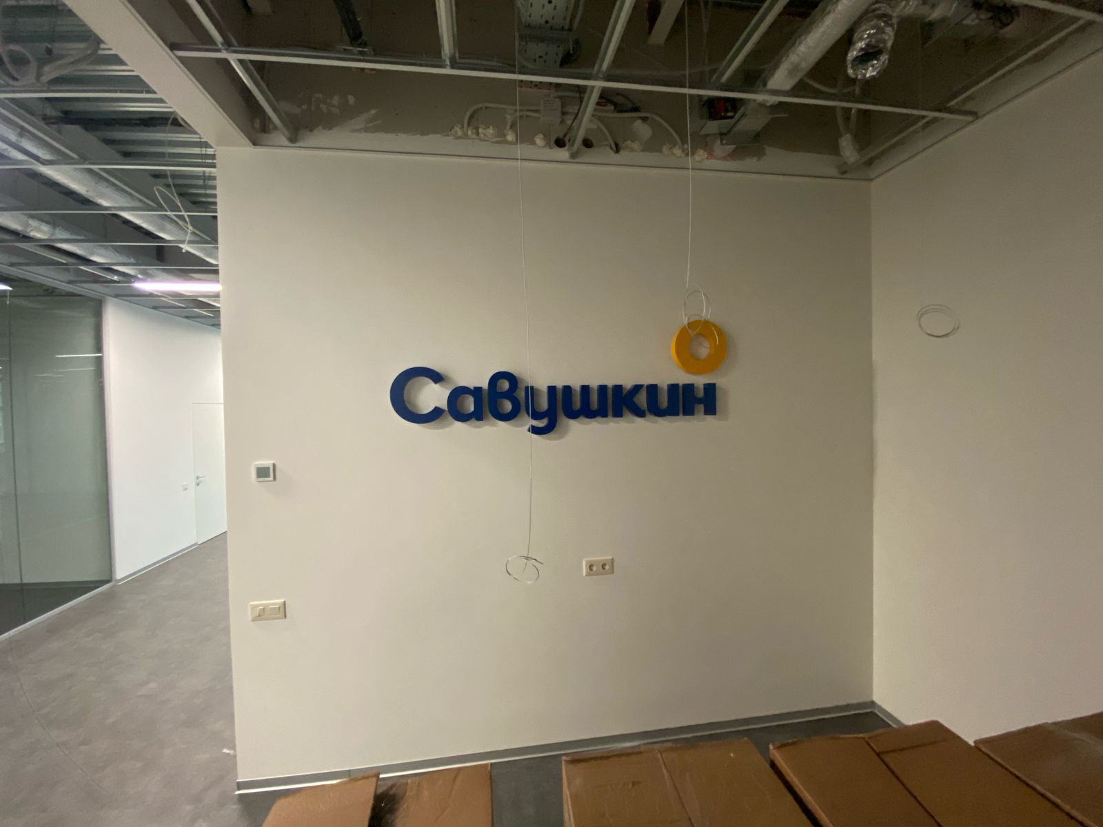 Монтаж букв с контражуром отличается сложностью, так как провода для питания диодов нужно подвести к каждому световому элементу со стороны стены. Заказчик получает трафареты букв, где отмечают места для вывода проводов, и после этого строители штробят стену.