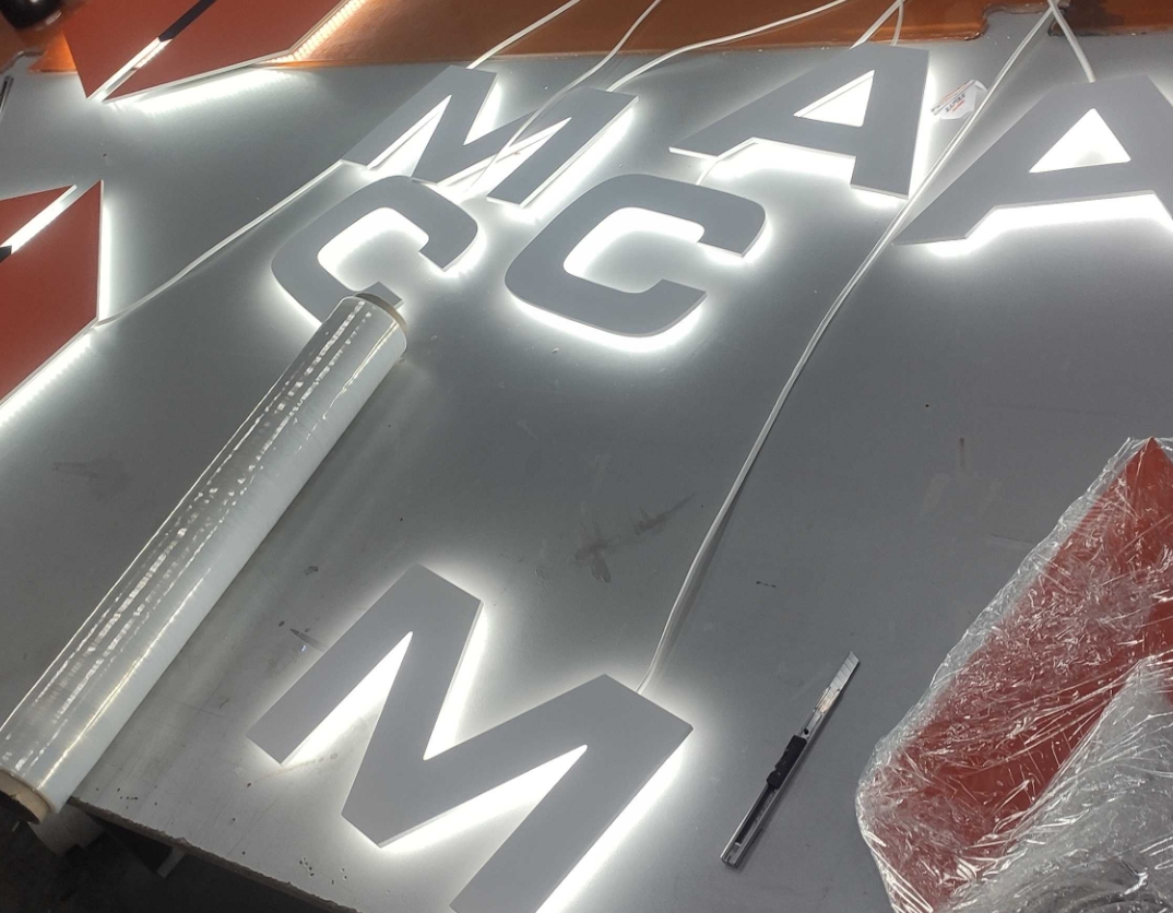 Качество подсветки зависит от поверхности, на которую устанавливают буквы. Контражурный эффект хорош только на ровных плоскостях без выступов, бордюров или перепадов высоты. Если основание имеет неровности, свет распределяется неравномерно. Для четкого свечения и скрытого монтажа электрики лучше рассмотреть альтернативные варианты, например, объемные световые буквы с боковой или фронтальной подсветкой.