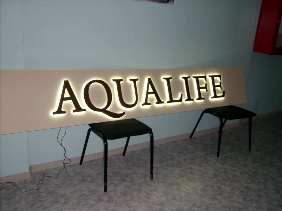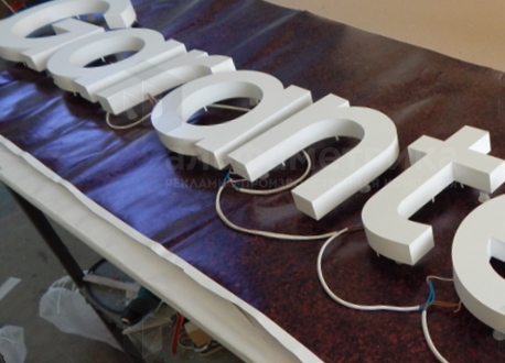 Организацию подсветки осуществляют с помощью светодиодных модулей, дающих равномерное свечение и энергоэффективность. LED-модули монтируют в зазор между буквой и стеной, создавая эффект «парящего» знака. Толщина материала плоских букв составляет от 2 до 20 мм и выбирается по размерам конструкции.