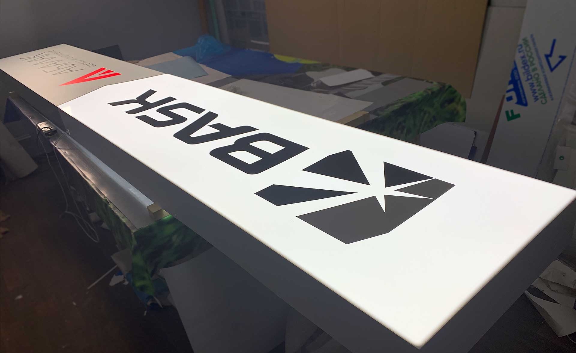 Заказчик — магазин одежды и снаряжения — обратились к нам для создания светового короба из акрила, который бы соответствовал стилю бренда. Основные требования при выполнении заказа: