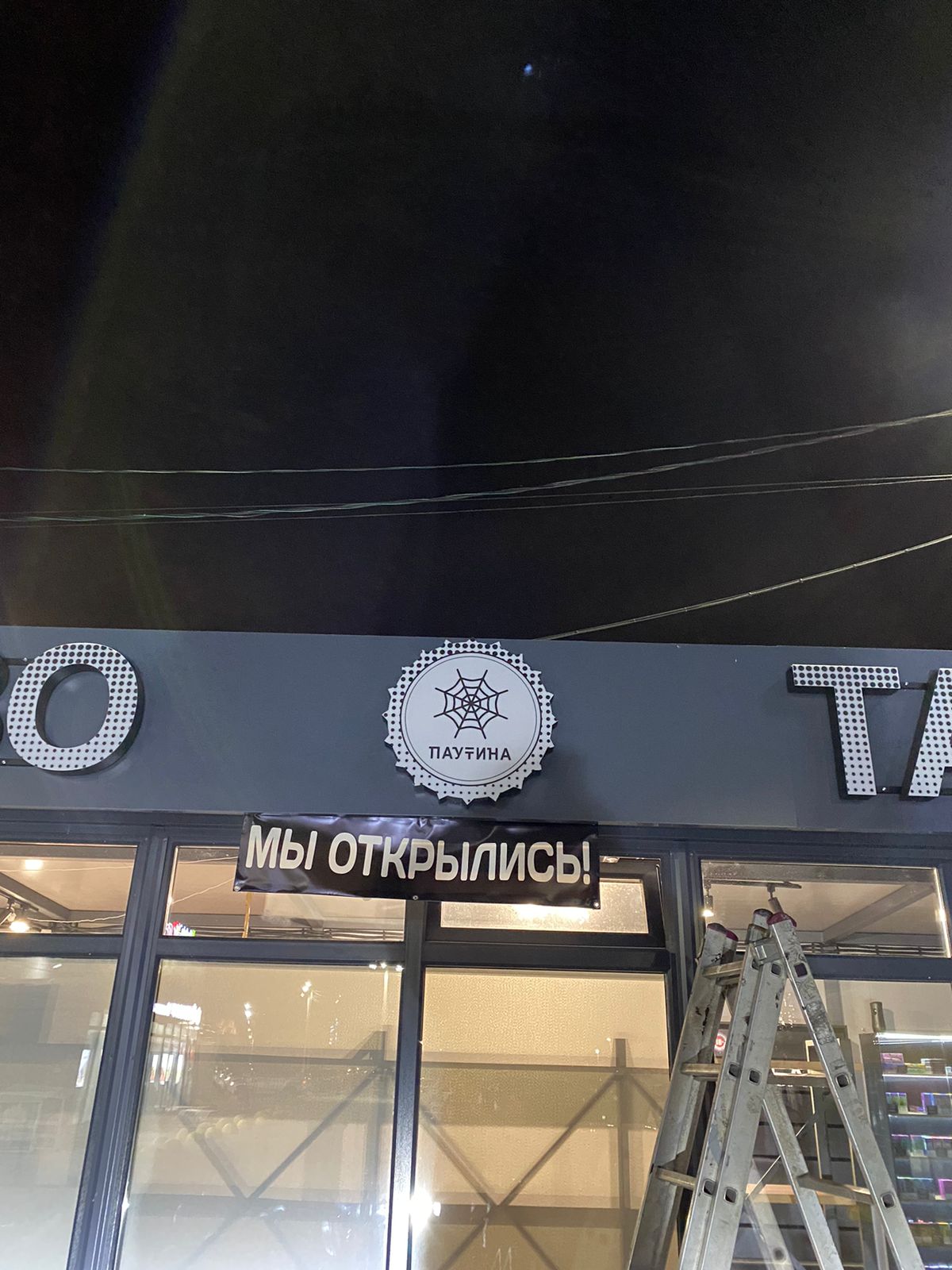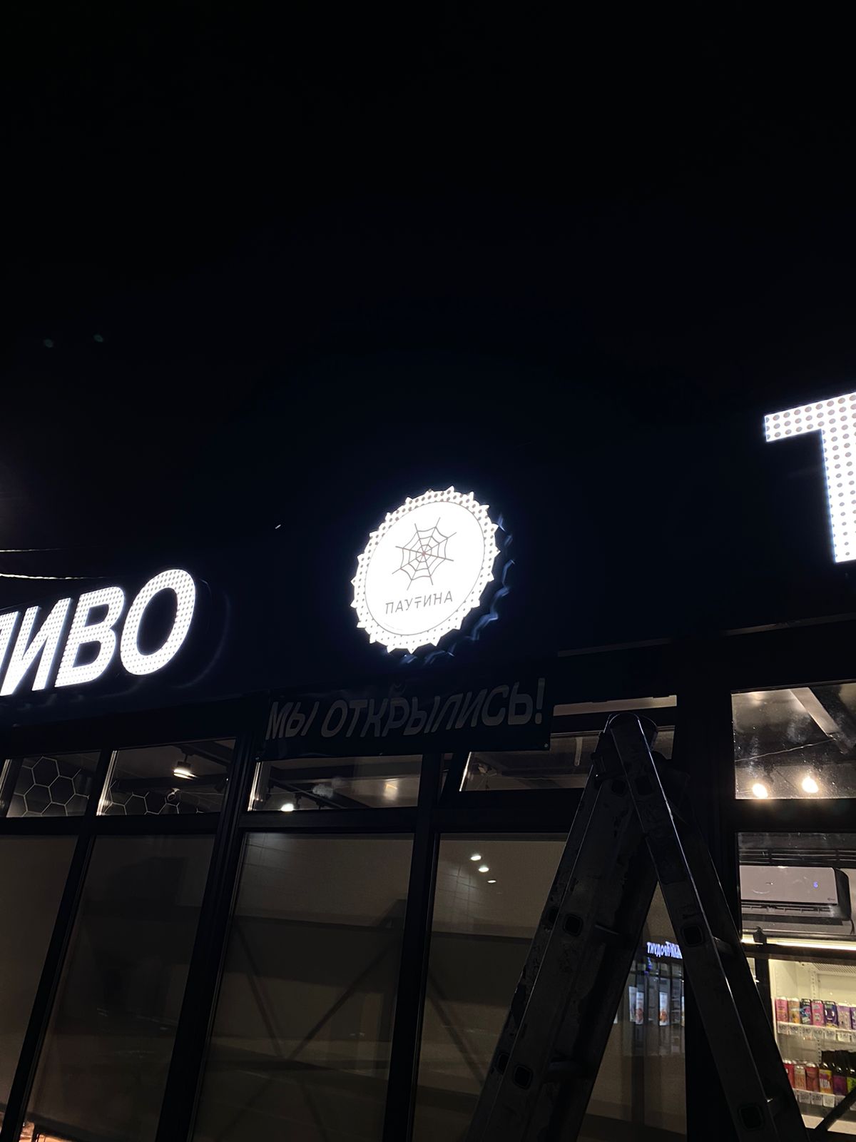 Световой короб с баннером изготовлен за 6 дней и установлен за 2 часа. Работает пару месяцев исправно. Световой короб без повреждений и потёртостей. Крепление надёжно держит вывеску. Подсветка не перегорела.