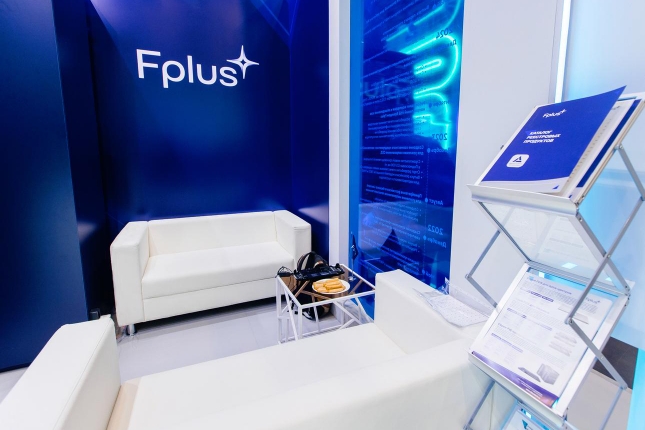 Был изготовлен аккуратный стенд с продуманной планировкой. Входная зона встречала гостей стойкой-рецепцией, а несколько разнообразных переговорных мест со столами и стульями обеспечивали удобство для делового общения.