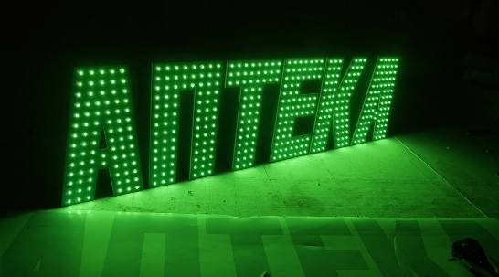 Сами по себе объемные буквы с открытыми пикселями и так выглядят броско. Но чтобы усилить этот эффект, повысив узнаваемость бренда и увеличив клиентскую базу, мы тщательно подготавливаемся к производству вывески.