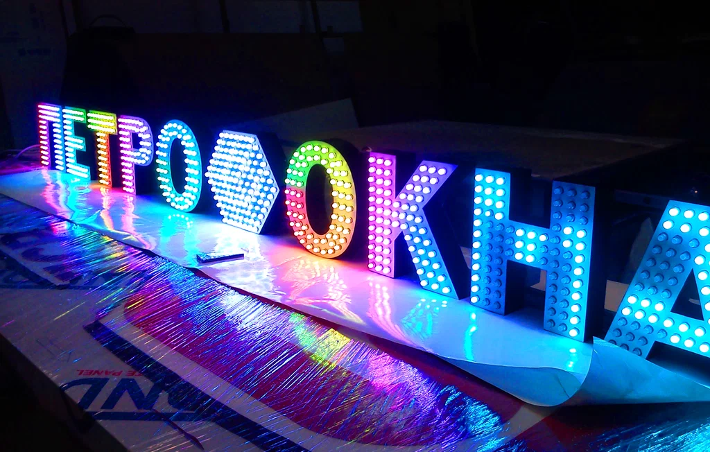 Изготавливаем объемные буквы с открытыми светодиодными пикселями в собственных цехах на территории Ленинградской области. Используем материалы высочайшего качества от проверенных поставщиков и собираем конструкцию в срок от 2 до 10 дней. Вывеска, изготовленная нашими специалистами, служит более 10 лет, сохраняя герметичность и эстетичность.