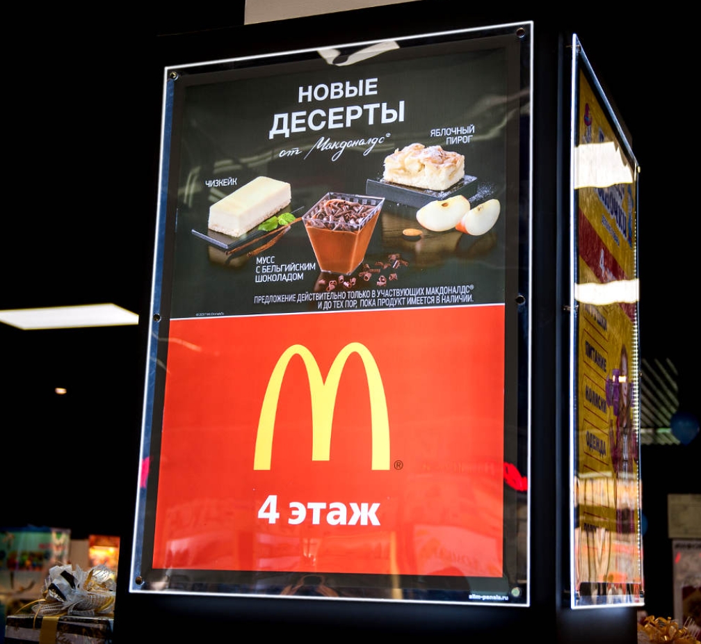 В заведениях общественного питания световые панели кристалайт показывают: меню и рекламу. Их размещают на стенах или стойках, чтобы гости могли быстро просмотреть популярные блюда, акции или сезонные предложения. Яркие изображения еды стимулируют аппетит и увеличивают средний чек.