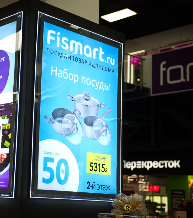 В аптечных сетях crystalight используют для продвижения выгодных акций, скидок и новых препаратов. Панели монтируют на стены или между оконными рамами, что особенно эффективно для привлечения прохожих. Четкая подсветка делает текст и изображения хорошо заметными даже в дневное время.